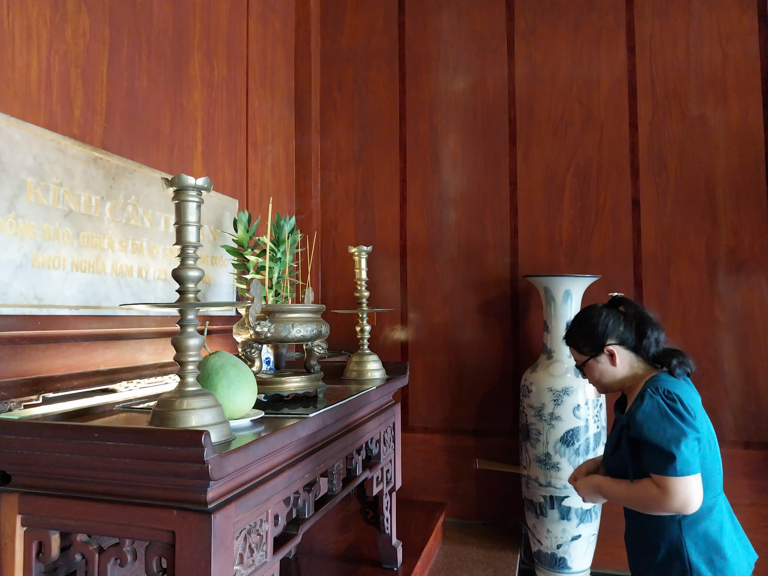 Bà Lý Trần Đỗ Quyên – Thư ký HDN KV TBSG dâng hương tưởng niệm các anh hùng liệt sĩ tại Khu Di tích Ngã Ba Giồng