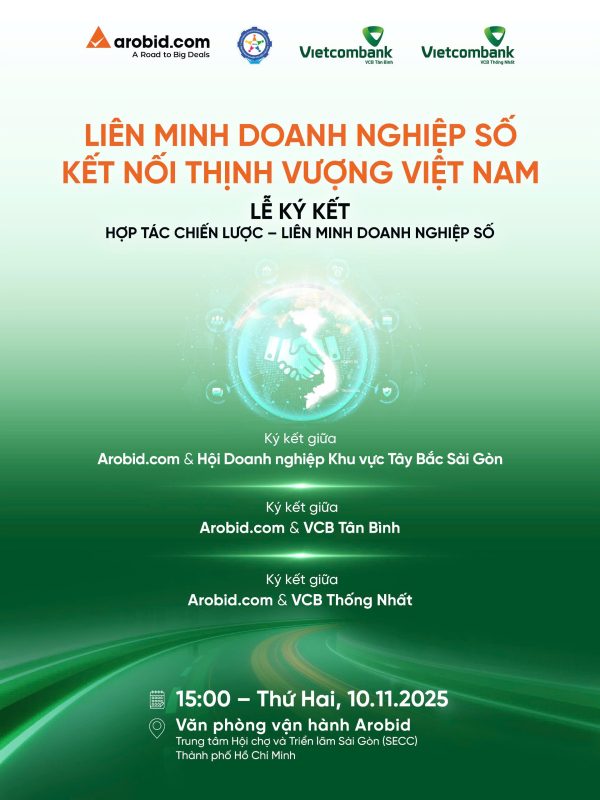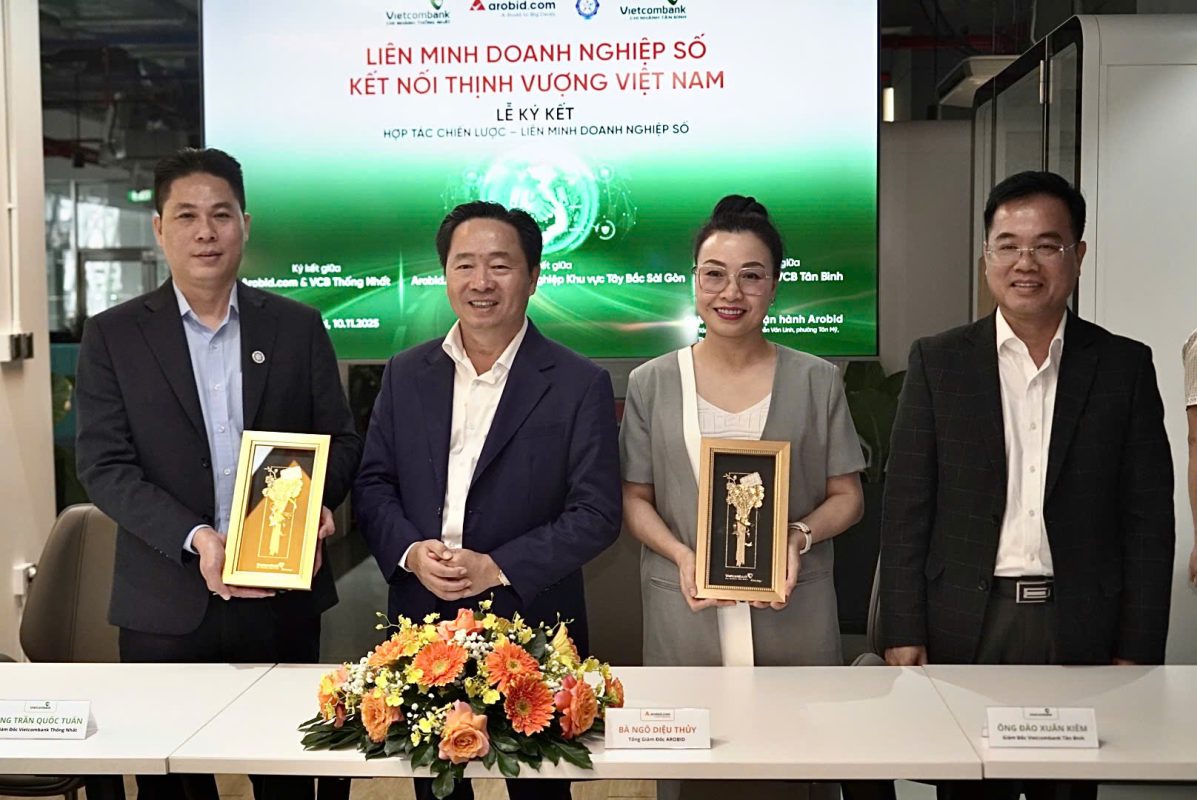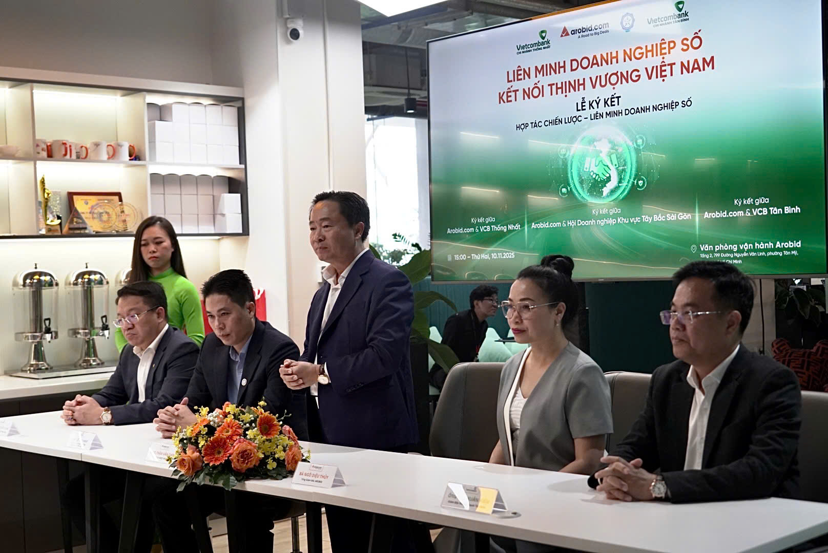 Chiều ngày 10/11/2025, đã diễn ra Lễ ký kết hợp tác chiến lược giữa Arobid, Hội Doanh nghiệp Khu vực Tây Bắc Sài Gòn, cùng Ngân hàng TMCP Ngoại thương Việt Nam – Chi nhánh Thống Nhất và Chi nhánh Tân Bình. Đây là sự kiện quan trọng, đánh dấu bước chuyển mới trong hành trình thúc đẩy chuyển đổi số và hình thành liên minh doanh nghiệp số tại TP. Hồ Chí Minh.