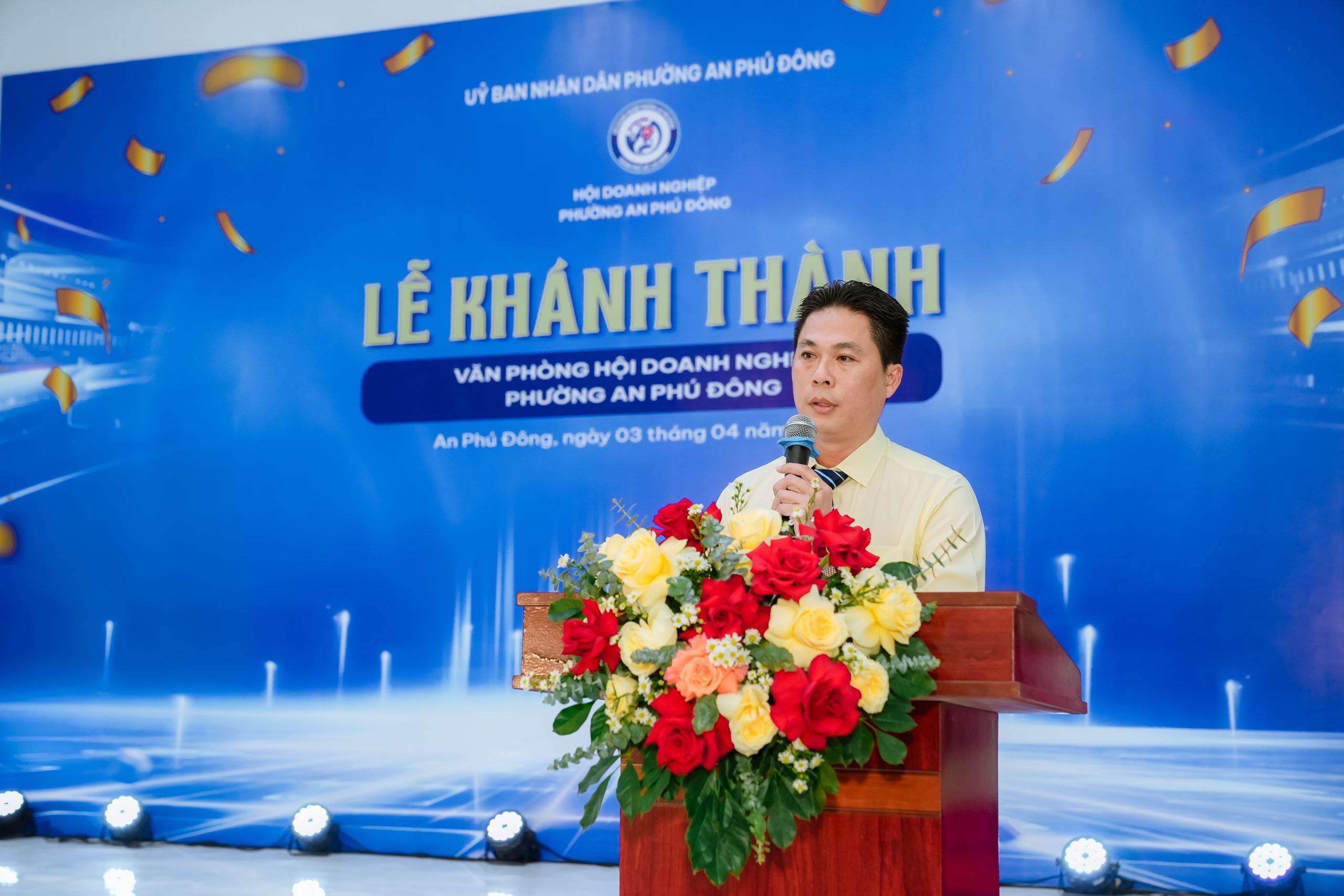 Tại chương trình, ông Lê Tấn Nam đã đại diện HDN khu vực TBSG phát biểu, gửi lời chúc mừng đến Hội Doanh nghiệp phường An Phú Đông nhân dịp khánh thành Văn phòng Hội, đồng thời đánh giá cao ý nghĩa của việc hình thành “ngôi nhà chung” cho cộng đồng doanh nghiệp địa phương – nơi kết nối, chia sẻ và hỗ trợ hội viên trong quá trình phát triển sản xuất kinh doanh.