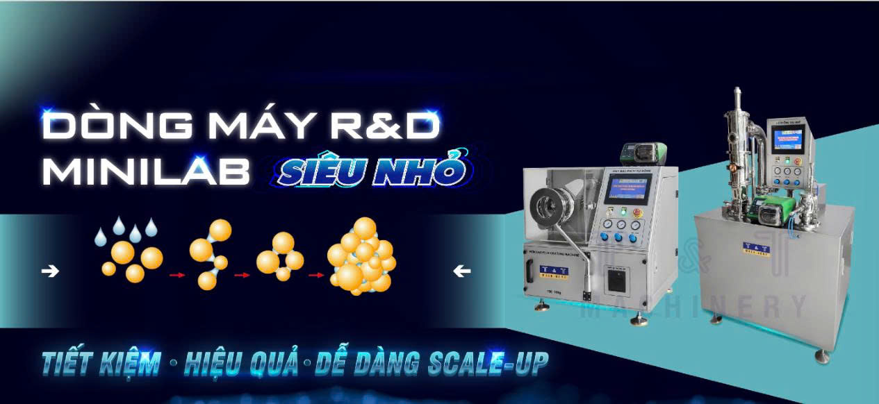 Máy móc R&D: thiết bị thử nghiệm quy mô nhỏ tới pilot, hỗ trợ nghiên cứu công thức, tối ưu chi phí nguyên liệu và dễ scale-up sản xuất.